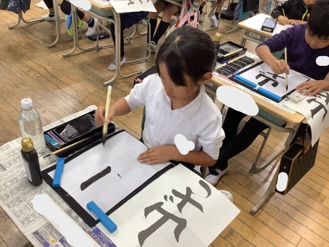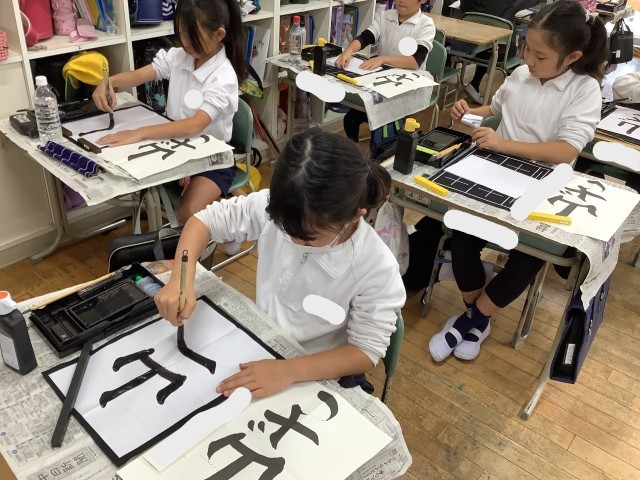 11月7日 3年生 書写 書き初め会の練習が始まったよ
