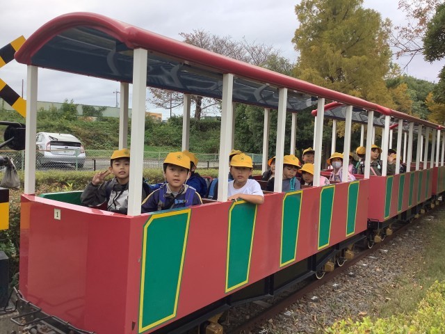秋の空の下、みんなで歩いて堀内公園に行きました。乗り物に乗ったり、お弁当を食べたり、楽しい思い出ができました。おいしいお弁当の準備をありがとうございました。