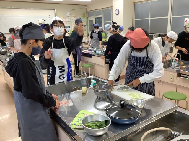 茹でる調理と炒める調理を合わせて、先にお湯を沸かしておくなど効率よく調理する姿が見られました。