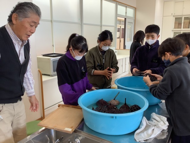 12月10日 6年生 さくらい学習 ハスのコースター作り