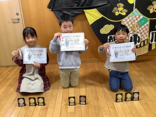 そろリンピック2025 3年生の部 個人総合競技金メダル フラッシュ暗算競技金メダル 読上算競技銅メダル