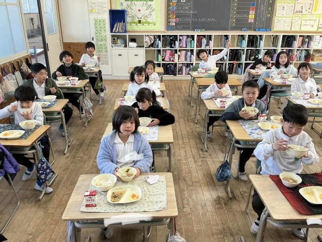 今日の給食は、アジア大会応援メニューです。台湾料理のルーロー飯をおいしくいただきました。