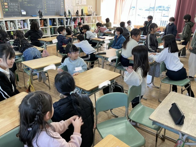 今日は、今年度最後のなかよし学級を行いました。今回は5年生の子たちが中心となって遊びを考え、1〜6年生みんなで楽しい時間を過ごしました。また、今まで中心となって盛り上げてくれた6年生に、ありがとうの気持ちを伝えました。