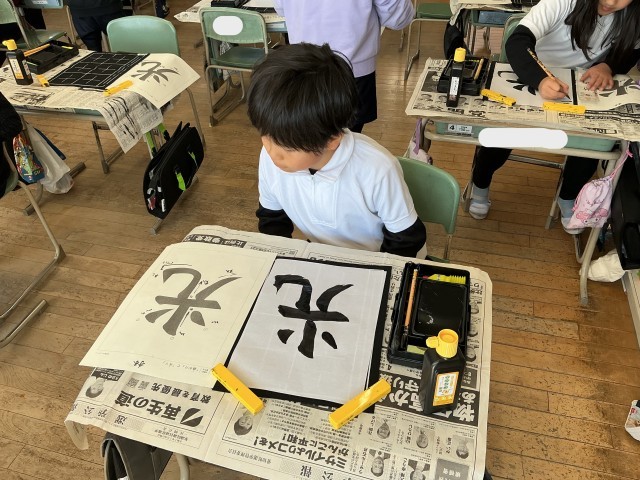 「曲がり」と「反り」を意識して「光」の清書をしました。