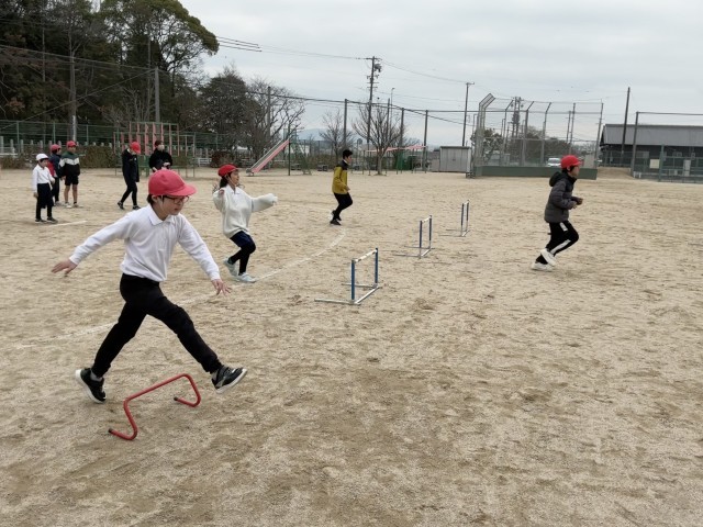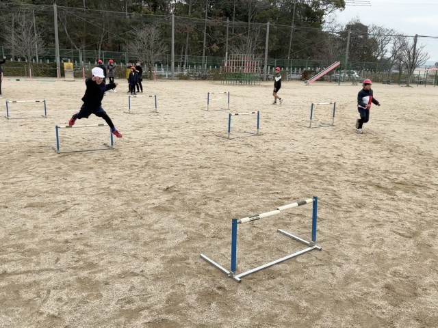 さくら組の体育では、ハードル走をがんばっています。何度も練習を重ね、タイミングよくハードルをとぶことができています。子どもたちも楽しそうです。