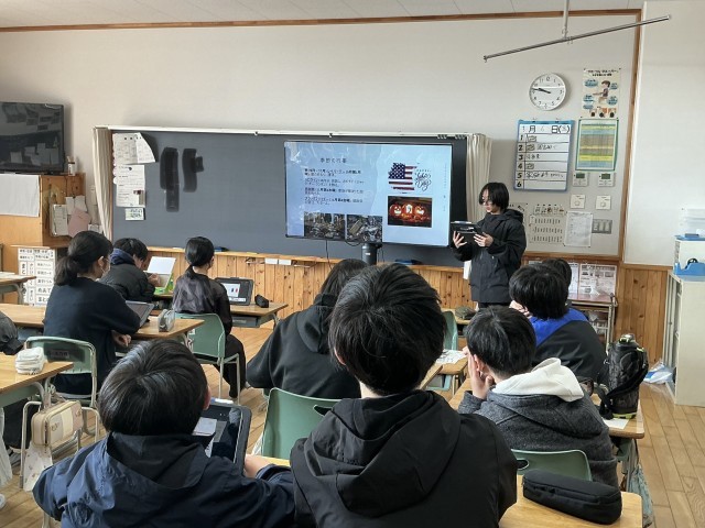 6年生の社会科では、自分が興味をもった国について調べ、プレゼンテーションソフトにまとめ、発表をしています。その国の学校の様子や文化、世界遺産などを写真を見せながら紹介しました。日本と同じところ、違うところなど比較しながら発表を聞きました。