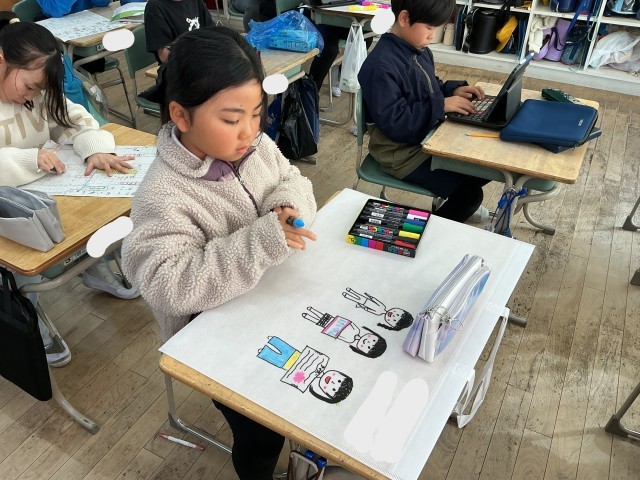 3月12日 3年生 図画工作科 思い出いっぱい 作品バッグづくり