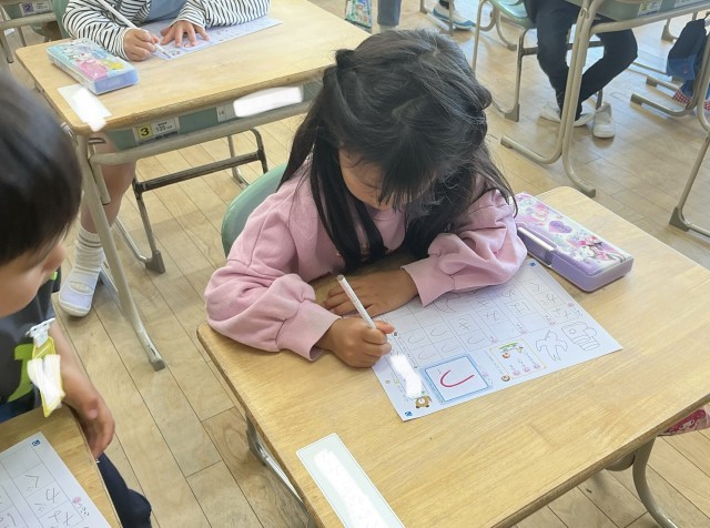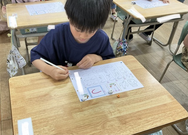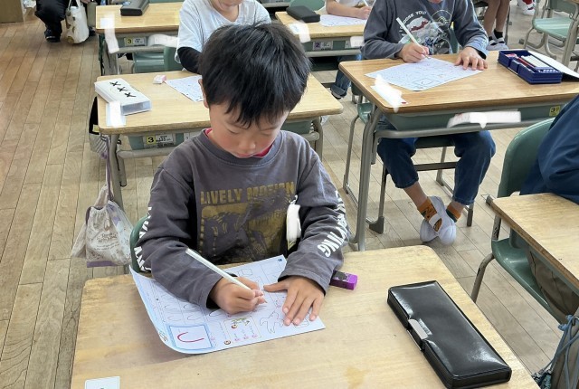 1年生の国語では、ひらがなの学習を始めました。一文字一文字じっくりとていねいに書いています。