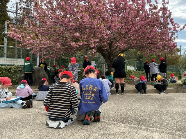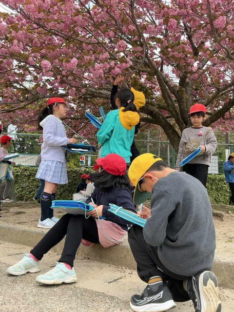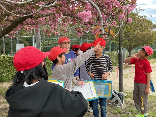 桜の枝の先についている花を観察カードに記録しました。