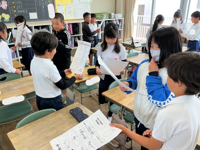 自己紹介カードが完成したので、ペアで交流をしました。
