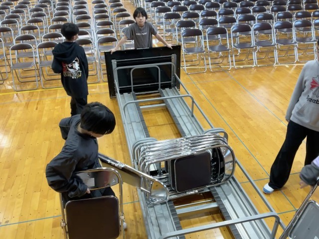 明日のPTA総会に向けて、6年生の子たちが会場作りをしてくれました。どの子も積極的に仕事をしてくれたので、あっという間に完成しました。ありがとうございます。