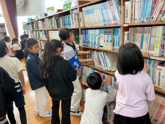 国語の学習で、図書館の使い方を確認しました。