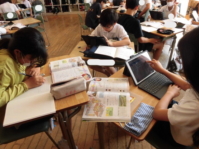 「これってどういうこと?」「この資料について聞かせて!」など、子どもたちが自分から関わり合いながら学んでいます。