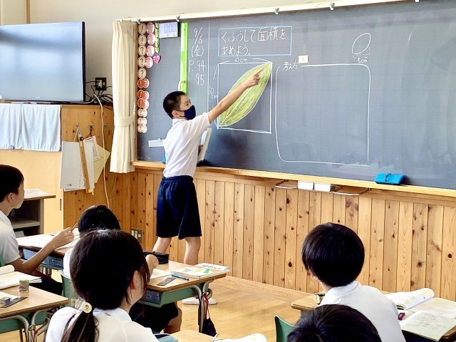 「くふうして面積を求めよう」を学習課題として取り組んでいます。