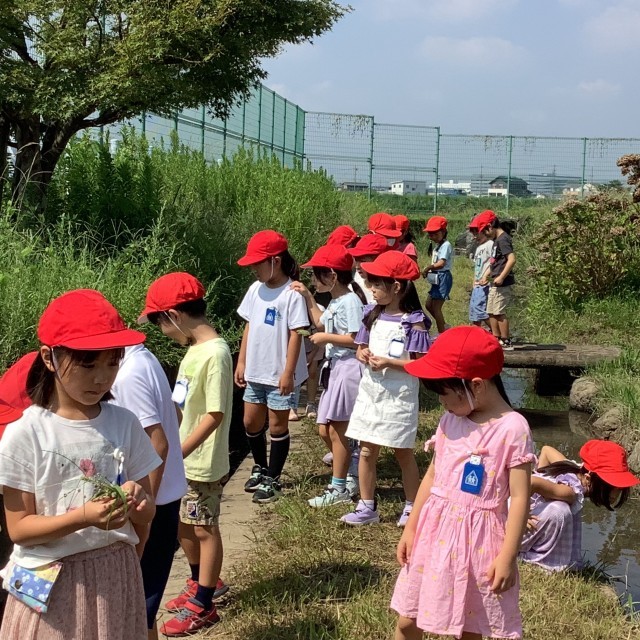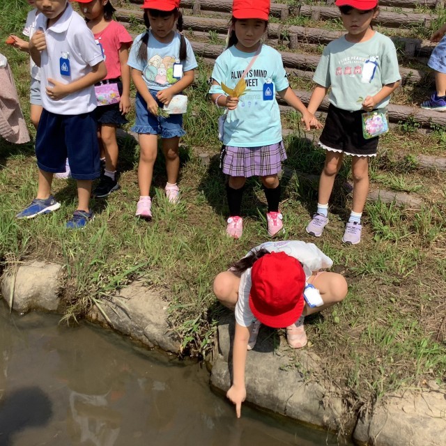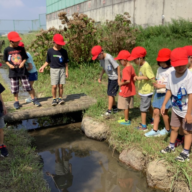 生活の授業で、ビオトープに秋を見つけに行ったよ。