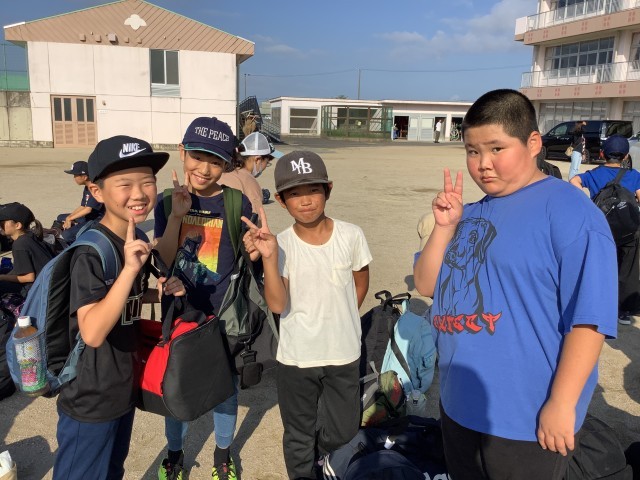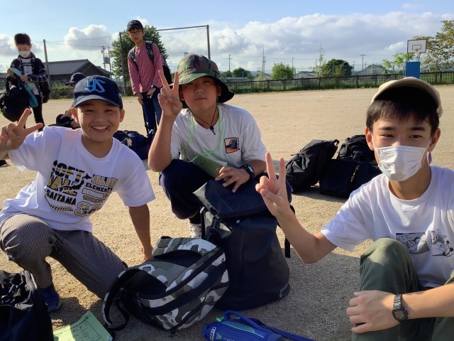 集合してきた5年生の桜井っ子は笑顔あふれんばかり。