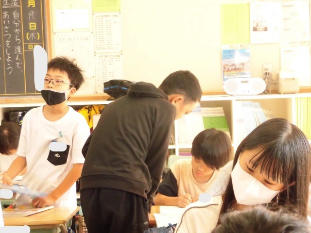 その日の授業内容を理解するために、友達と一緒に考え合ったり、算数の友を使ってとことん考えたりしています。