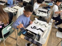 3年生から始まった習字の学習。「一」(横画)を書くことから始まり、たて画、右はらい、左はらい、おれ、はね…と、筆で書く練習をしてきました。