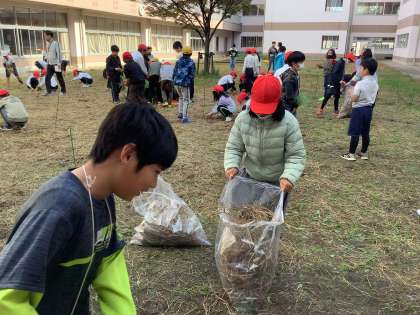 12月14日 栽培委員会 3、4年生草取りプロジェクト進行中