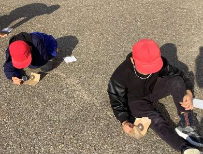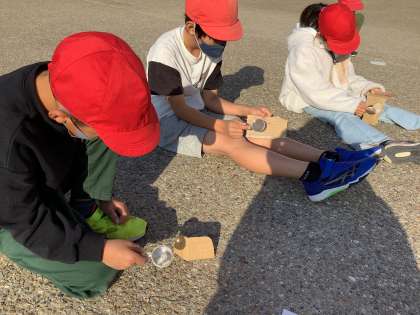 凸レンズを使って、太陽の光を集めることに熱中しています。
