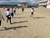 初めての全員リレーに挑戦しました。みんなで協力してバトンをつなぎました。