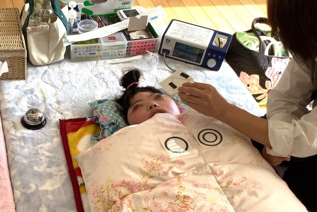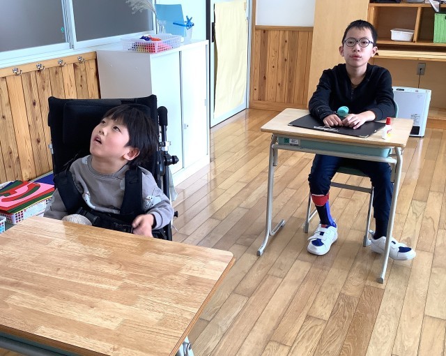 1時間の授業で、一人一文字ずつ決めて、看板の文字の飾りをつけています。