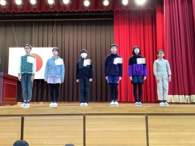 今日は、2学期の終業式を行いました。校長先生からは、桜井っ子たちが2学期の中で運動や読書、授業での発言など、たくさん挑戦する姿が見られてすばらしかったです、とお話がありました。代表児童からは、2学期にがんばったことや3学期に向けてのお話がありました。児童会代表の子たちからは、2学期の児童会活動での取り組みを振り返って、桜井っ子たちのすてきな姿を発表してもらいました。桜井っ子たちのがんばりが輝いていた2学期でした。保護者のみなさん、地域のみなさん、いつも支えていただき、ありがとうございます。