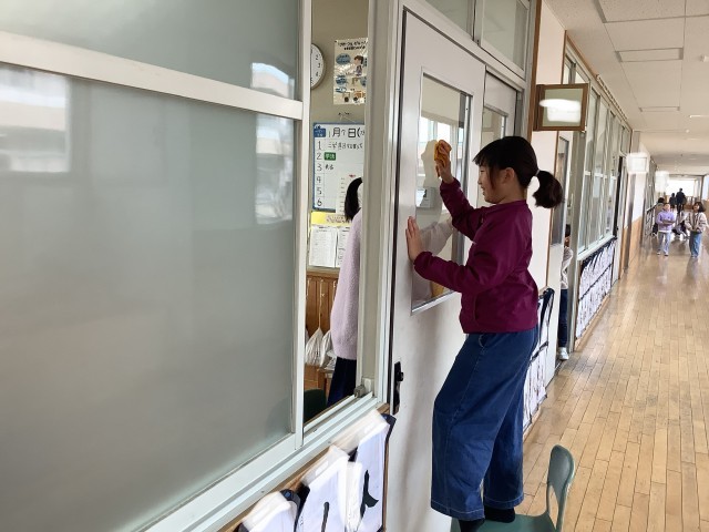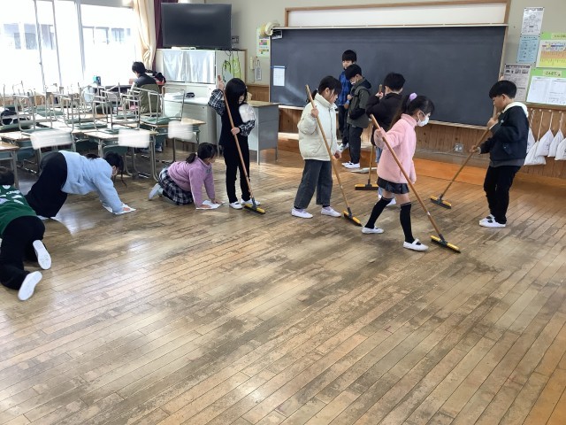 始業式の後の学級活動では、新年の目標を伝えあったり、冬休みの思い出を伝えあったり、掃除をしたりしています。子どもたちの明るい声が、校舎内に響き渡っています。