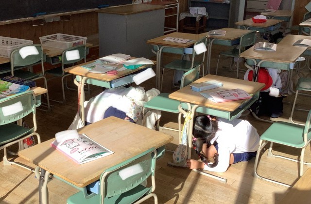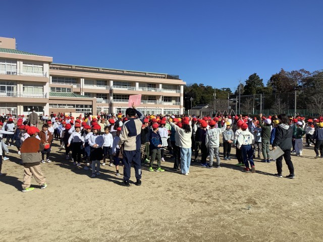 今日は、地震に対する避難訓練を行いました。今回は、授業時間外に地震が発生することを想定した訓練を行いました。休み時間に、外で遊んでいたりいろいろな場所で活動していたりしているところで、訓練放送を流しました。桜井っ子たちはすぐその場で自分の身を守り、そのあと落ち着いて避難することができました。