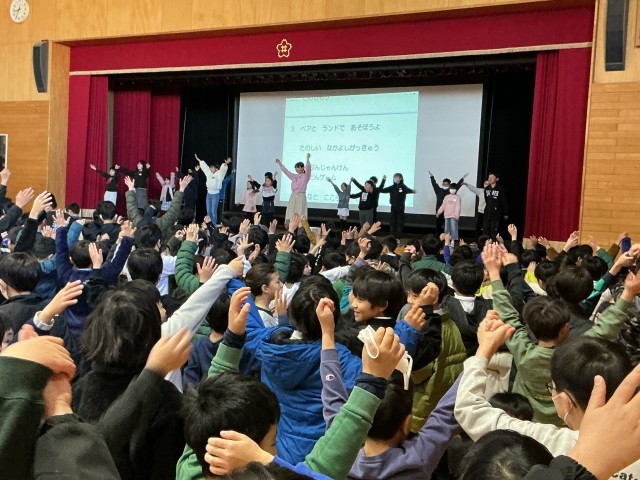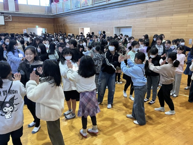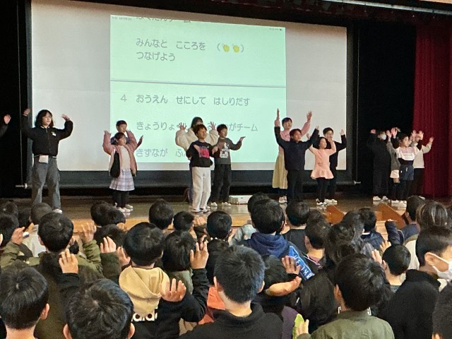 今日は、今年度最後の児童集会を行いました。全校のみんなが集まって、リニューアルしたさんさんさくらいっ子を踊りました。ペアでハイタッチをしたり、手をつないだりする振り付けも入りました。2年生の子たちが考えてくれた新しいさんさんさくらいっ子を、これからも楽しく踊っていきましょう。