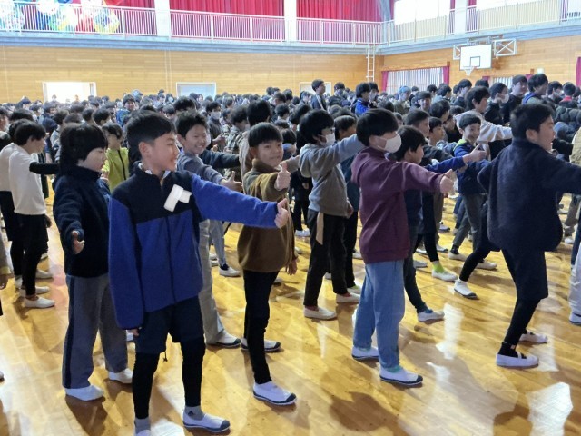 3月10日 児童集会 さんさんさくらいっ子を踊ったよ