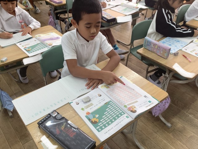 1年生の元気な声が教室に響いています。