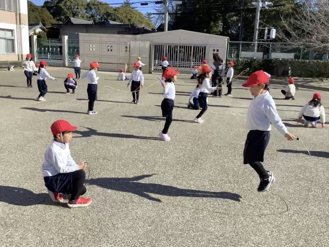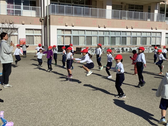 • 1月9日 1年生 体育 なわとび、がんばっています