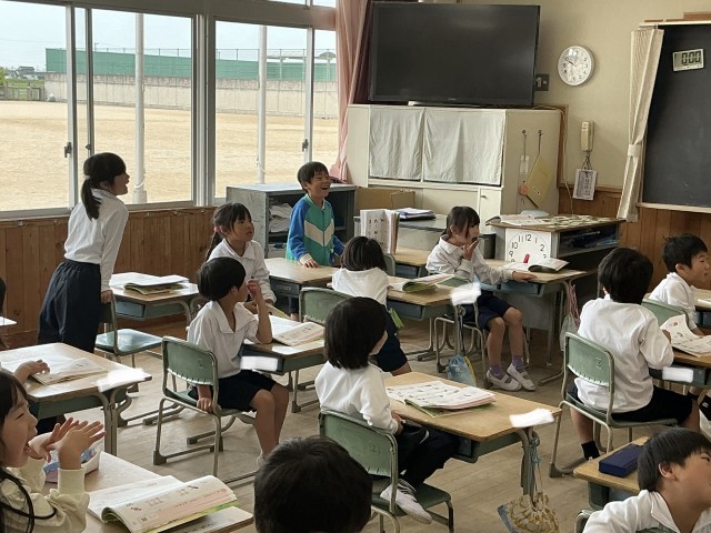 1年生の国語では、音読をがんばっています。リズムよく、声をそろえて、大きな声で読んでいます。