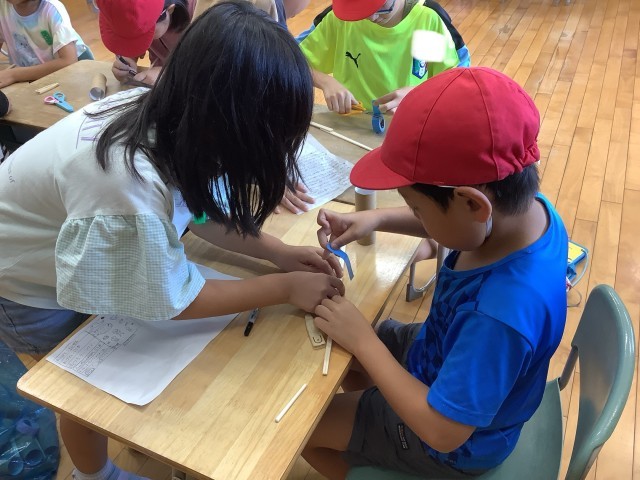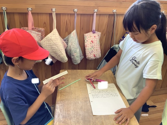 生活科「あそんで作ってくふうして」の授業が進んでいます。いろいろな材料オリジナルのおもちゃを作った後、今度は1年生にもおもちゃの楽しさを伝えたいと、おもちゃ教室を開こうと準備中です。