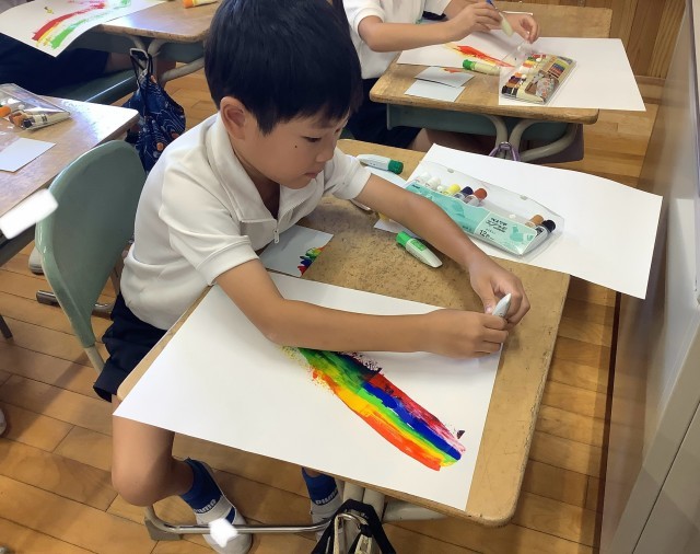 • 6月26日 2年生 図画工作科 いろいろな塗り方に挑戦しよう