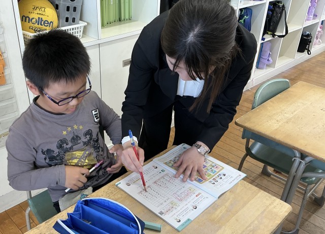 2年生の体育では、なわとびをがんばっています。自分で目標を決め、練習に取り組んでいます。中には、二重跳びを何回も連続で跳んでいる子もいます。