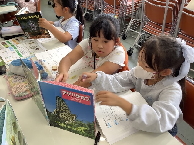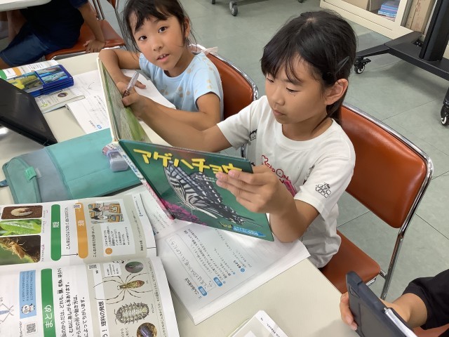 図書館の先生が昆虫のことがよくわかるような本を用意してくれました。