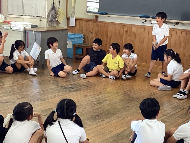 クラス全員で1つの輪を作り、話し合い活動をします。
