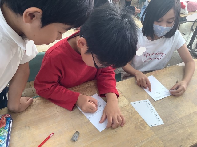 さくらさんの学びのために、はがき記入の協力をしました。