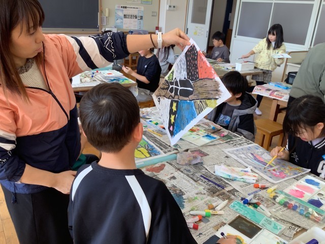 4年生が、桜井凧保存会のみなさんに教えてもらいながら、角凧作りに挑戦しました。竹ひごを組み合わせて凧を作っていきます。どうやったらうまく作れるか、保存会のみなさんに質問をしながら、完成させていきました。桜井っ子たちは、地域の方たちに支えられて心豊かに育っていきます。桜井凧保存会のみなさん、ありがとうございます。