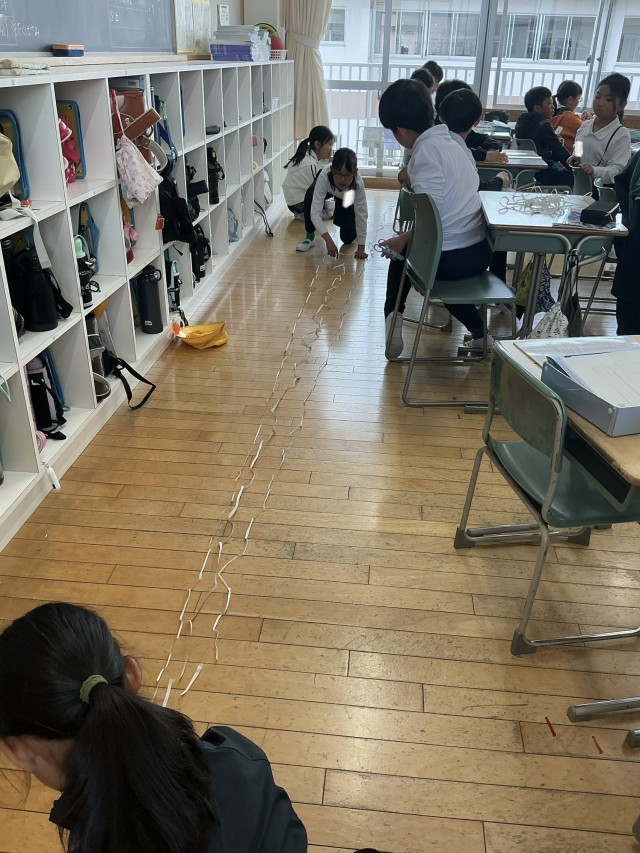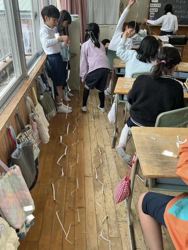 4年生では、2年生の子たちを招待して、リサイクルまつりを開催する予定です。リサイクルを楽しみながら学ぶことができるよう、いろいろな遊びを考えました。今日は、先生たちに来てもらって、リサイクルまつりの練習をしました。先生たちも楽しく体験できました。