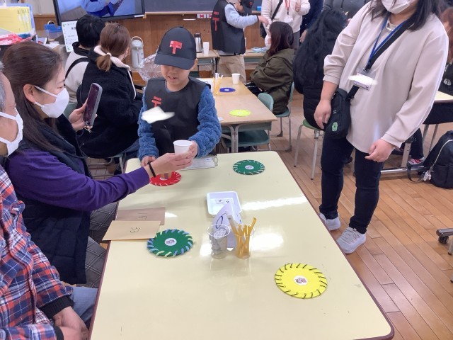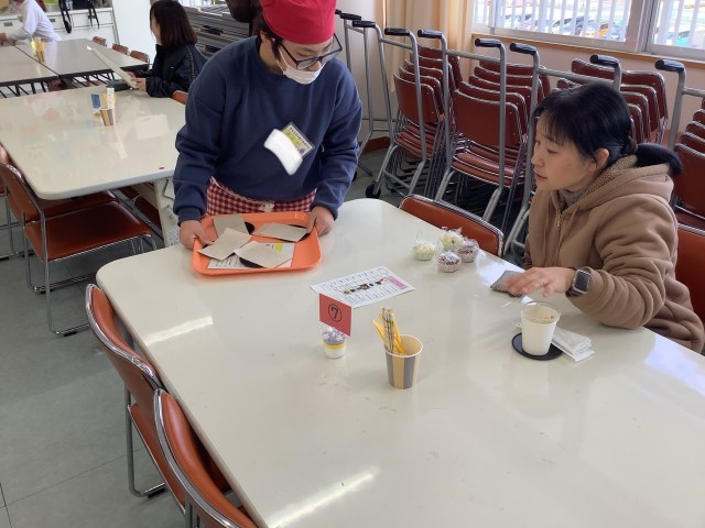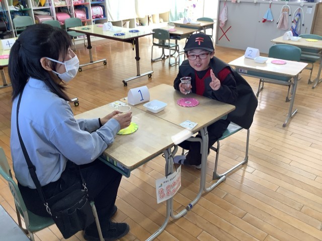 さくら3、4、6、7組は、学習発表会で、サツマイモカフェを開きます。本番に向けて、先生たちにお客さん役をやってもらって練習をしました。元気なあいさつとていねいな仕事で、素敵なカフェになっていました。本番が楽しみです。