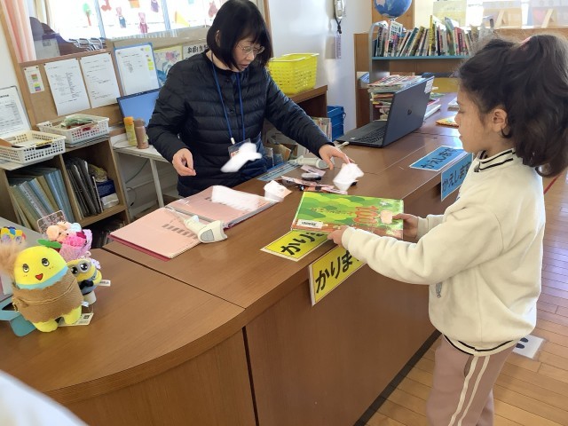 さくら組が、図書館の学習をしました。学校司書さんにせつぶんとおにの紙芝居を読んでもらい、節分について知ることができました。後半は、自分が読みたい本を借りて、じっくり読みました。