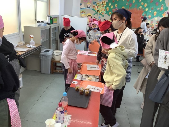 さくら3、4、6、7組が、学習発表会を行いました。自分たちが育てたサツマイモを使ってスイーツを作り、カフェを開きました。保護者のみなさんに楽しんでもらえました。