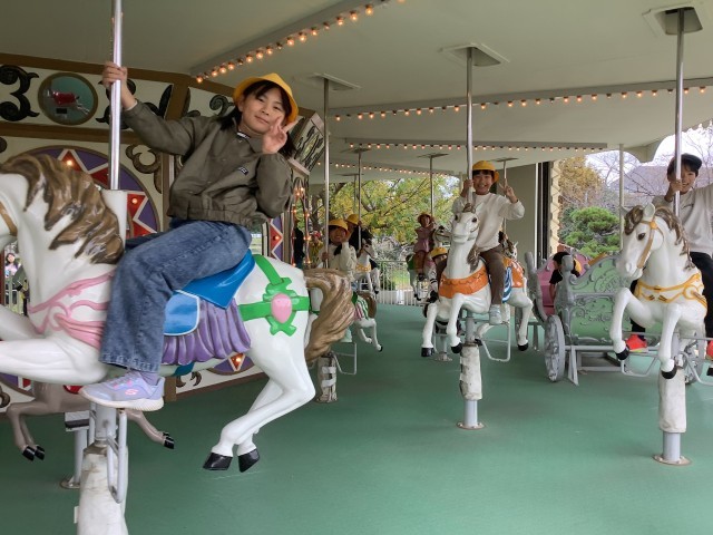 秋の空の下、みんなで歩いて堀内公園に行きました。乗り物に乗ったり、お弁当を食べ...
