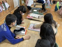 食べ物の名前や、三文字や五文字の言葉を集めて、しりとりをしました。グループで協...