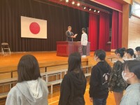 1年生が、1年間のありがとうの気持ちをこめて、校長先生や教頭先生など先生たちにお...