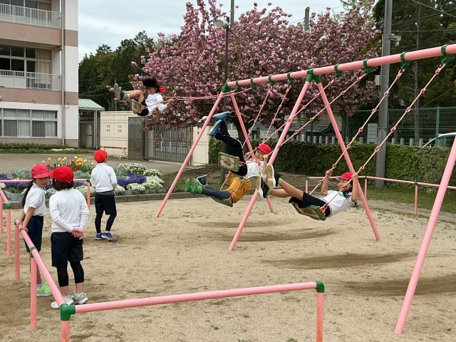 4月13日 さくら みんなで楽しく!新聞紙走!