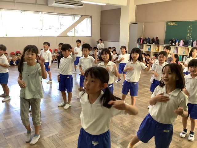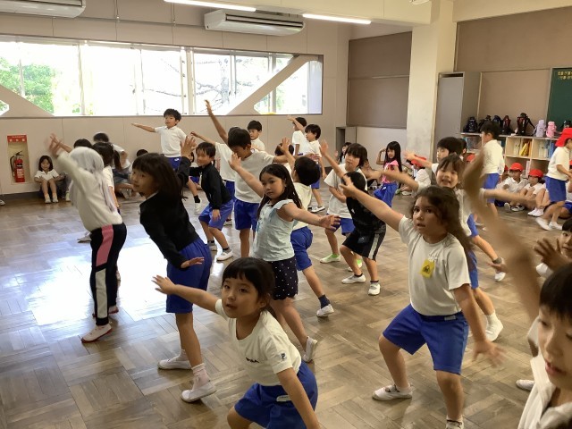 スポーツフェスティバルの1年生の競技にダンシング玉入れがあります。今回は学年で一緒にダンス練習をしました。クラスで初めてこのダンスを踊ることを知ったときは、「ええ!!」と言っていた子ものりのりで踊っていました。本番までにもっともっと上手になりそうです。